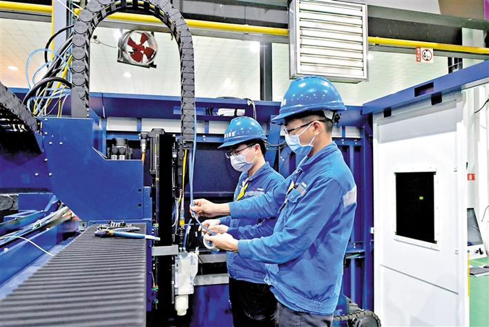 聽!大族激光智能裝備集團全國各地生產(chǎn)車間的機器轟隆聲回蕩著,生產(chǎn)車間馬力全開、各種零件錯落有致,工程師們或凝神工作或步履匆匆,處處是一片熱火朝天的景象。